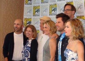 Producers Chris Henze, Kelly Kulchak and Steve Franks with actors Corbin Bernsen, Kirsten Nelson, James Roday and Maggie Lawson.