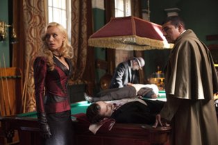 DRACULA — “Four Roses” Episode 109 — Pictured: (l-r) Victoria Smurfit as Lady Jayne Wetherby, Alastair Mackenzie as Lord Rothcroft, Tamer Hassan as Kaha Ruma — (Photo by: Egon Endrenyi/NBC)