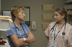 Edie Falco as Jackie Peyton and Merritt Wever as Zoey in Nurse Jackie