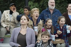 Jackie (Edie Falco) and daughters cheering Kevin on at his baseball game