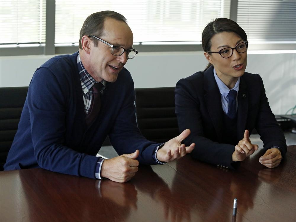 Follow Agents of S.H.I.E.L.D. on Twitter, as well as some of the cast: <Ward> Brett Dalton, <Coulson> Clark Gregg, <Simmons> Elizabeth Henstridge, and <May> Ming-Na Wen.