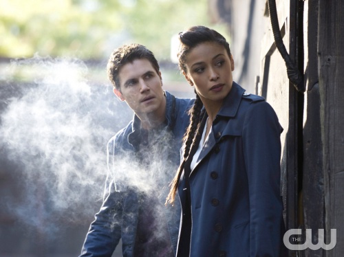 The Tomorrow People — ‘Kill Or Be Killed’ — Image Number: TP104a_0085.jpg —Pictured (L-R): Robbie Amell as Stephen and Meta Golding as Darcy —