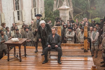But the major event, the one I’ve been waiting for since “XVII,” is the reckoning that awaits Charles Town and Ashe when Flint gets his revenge. All through “XVIII,” as Flint goes through his public trial, the cruelty of not just the British officials like Ashe, but townsfolk as well, is obvious. Writers Jon E. Steinberg and Robert Levine subject Flint to enough painful circumstances— from Ashe’s betrayal to the desecration of Miranda’s corpse— that his retaliation on the whole Carolina colony is justifiable, which toes the moral line of right and wrong. As powerful as the story is, the performances in “XVIII” are outstanding, especially Stephens, who is so remarkable in displaying Flint’s agony and wrath, it tugs at your emotions immediately.