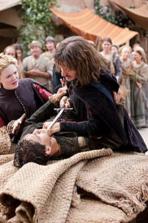 The Pope takes a late night stroll through the streets of Rome to see for himself how the poor live. He’s appalled at what he sees, and rightfully so. When he learns that the Vatican funds intended for the poor have been squandered away, he finds a way to rectify the grievance. There are moments when the Pope actually seems to care for his subjects but most of the time he seems to be a selfish man. He has the appearance of someone who is chaste, honorable, and unprejudiced, but the sad truth it’s all an illusion. I think what I love the most about The Borgias is the blatant flaunting of hypocrisy. The Pope is considered a pillar in our current society – a man of faith, honesty, kindness, and acceptance. How does the modern day role of Pope stem from such a tainted throne? As we’ve seen throughout history, even highlighted in another great Showtime series, The Tudors, political gain through religious coercion was the coin of nobility. Being agnostic, I find shows like The Borgias so refreshing because they don’t just highlight the positives of having faith; they also show the darker side of the power of religion. We see evidence of the darkness coming out through a scorned Cesare. The way he pines for his former lover Ursula (Ruta Gedmintas) – now a nun known as Sister Martha – is woefully endearing. I wish he would just be done with her and move on. She obviously wants to do her penance but I have a feeling Cesare will charm her again. I must say, Arnaud is quite the handsome devil. He plays Cesare with such vigor and enthusiasm, which makes it that much more delightful to tune in each week.