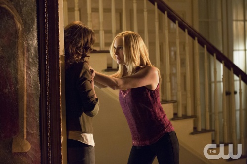 The Vampire Diaries — “No Exit” — Image Number: VD514b_0253.jpg — Pictured (L-R): Olga Fonda as Nadia (back to camera) and Candice Accola as Caroline — Photo: Bob Mahoney/The CW — © 2014 The CW Network, LLC. All rights reserved