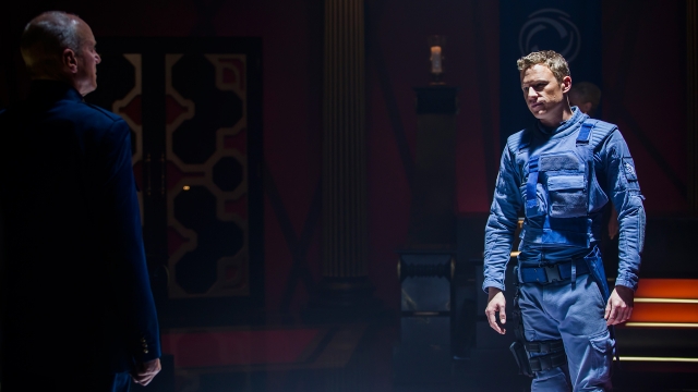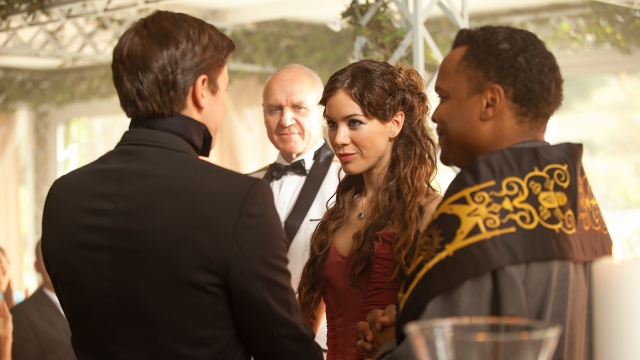 It’s not with a whimper but a bang that the season finale of Dominion concludes the series’ debut season. In an extensive 90-minute showdown, “Beware Those Closest to You” places all the core characters at a standstill. One of the strengths in “Beware Those Closest to You” is the emotional range within the story lines. For example, the wedding between the House of Whele’s heir, Principate William (Luke Allen-Gale), and Claire Riesen (Roxanne McKee), the heiress to the House of Riesen reflects one of the lighter elements as they exchange sweet vows. Yet, their scene also adds a bittersweet tone considering William serves as one of Archangel Gabriel’s (Carl Beukes) secret acolyte, creating an underling tension I like watching unfold during the finale. Then there are the more serious scenes showcasing the inner strife among archangels Michael (Tom Wisdom), Gabriel, and Uriel (Katrine De Candole) whose extreme actions causes several major game changes where lives hang in the balance. Finally, Sgt. Alex Lannon (Christopher Egan) provides a lot of action sequences when he decides to take action against Gabriel and his army.