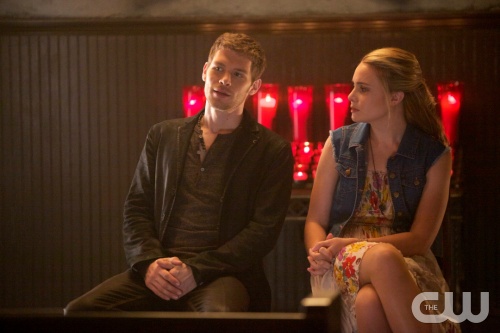The Originals — “Girl in New Orleans” — Image Number: OR104b_0072.jpg — Pictured (L-R): Joseph Morgan as Klaus and Leah Pipes as Cami — Photo: Annette Brown/The CW — © 2013 The CW Network, LLC. All rights reserved