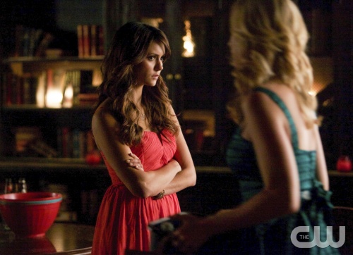 The Vampire Diaries — “Dead Man on Campus” — Image Number: VD508b_0254.jpg — Pictured (L-R): Nina Dobrev as Elena and Candice Accola as Caroline — Photo: Annette Brown/The CW — © 2013 The CW Network, LLC. All rights reserved.