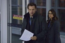 THE STRAIN — Pictured: (L-R) Corey Stoll as Ephraim Goodweather, Mia Maestro as Nora Martinez. CR. Michael Gibson/FX