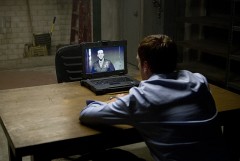 Brody watches his now infamous suicide bomb vest confession tape.