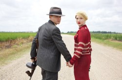 We are taken back to Clyde’s childhood where we learn about critical events that mold his character. The most significant event happens while in the throes of a dangerous fever. Clyde has a vision of a beautiful woman who he thinks is his angel; this experience has a profound influence on him, and soon we discover Clyde has a deep psychic intuition—a gift that later comes in handy when escaping law enforcement. The psychic visions are a nice twist, but considering this is a historical drama, based on true events, the inclusion of a paranormal component lessens the credibility of the story. The truth itself is melodramatic enough without needing to add anything else. Luckily, it doesn’t play too heavily once Clyde meets Bonnie.
