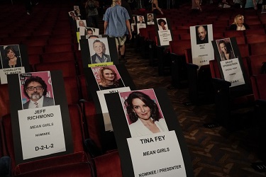Charlotte St. Martin, President of The Broadway League, Jeff Richmond, and Tina Fey seat cards are seen at rehearsals for the THE 72nd ANNUAL TONY AWARDS broadcasting live from Radio City Music Hall in New York City on Sunday, June 10, 2018 (8:00-11:00 PM, live ET/delayed PT) on the CBS Television Network. Photo: John P. Filo/CBS ©2018 CBS Broadcasting, Inc. All Rights Reserved
