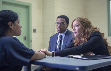 PROVEN INNOCENT: L-R: Guest star Liza Colón-Zayas, Russell Hornsby and Rachelle Lefevre in PROVEN INNOCENT on FOX. ©2018 Fox Broadcasting Co. Cr: Adrian Burrows/FOX