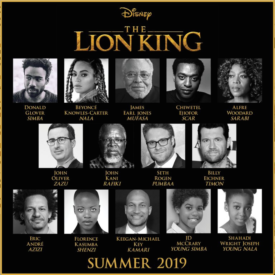The all-star lineup for director Jon Favreau’s new take on Disney’s 1994 classic animated film The Lion King includes stars from the film, TV, theater and music arenas. Featuring pioneering filmmaking techniques, the film welcomes back to the big screen iconic characters that audiences have long treasured—but in a whole new way. From Disney Live Action, The Lion King is slated for U.S. theaters on July 19, 2019.