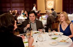 Paul (Oliver Platt) and Cathy (Laura Linney) have dinner with a Hollywood producer Rtia (guest star Allison Janney, back to camera)