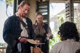 Meanwhile, Silver is held at Eleanor’s office with Gates, Flint, and Billy surrounding him. As Silver finishes scribbling down the Urca’s log passage, Flint realizes it’s incomplete. Silver, as usual, uses his charm to negotiate a deal. In exchange for safe passage on Flint’s ship, as well as a share of the loot, he will lead him piece by piece to their final destination.