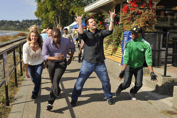 I remained skeptical during the opening number, “Santa Barbara Skies” but then Shawn (James Roday) and Gus (Dule Hill) approach Henry (Corbin Bernsen) who gives my favorite line of the night (as they try to convince him to sing).