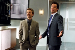 One of the things I like about Franklin & Bash is the sharp, witty dialogue present in almost every scene. I also enjoy the constant sniping between Damien Karp (Reed Diamond), Franklin (Breckin Meyer) and Bash (Mark-Paul Gosselaar). Saying Karp doesn’t like them very much is an understatement. As a matter of fact, he’s not thrilled at all when they try to be put on as second chair in the Kaplowitz murder trial, as he’s already been assigned the seat. Stanton, not wanting to ruffle anyone’s feathers, decides to have a third chair and tells Franklin and Bash they must decide who it will be, while the other gets to handle a civil matter being brought in by Stanton’s spiritual advisor (Tom Wilson).