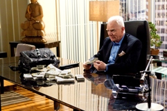 I’ve seen advertising of all sorts but I’ve never seen it displayed on a woman’s bare back. Yet that’s just what the guys do and it pays off when a bikini clad Margot (Alyssa Julya Smith) brings Carter Lang (Jason Alexander) roller blading into Infeld Daniels seeking Franklin and Bash’s help. In an Enron-like move, Lang gave himself $20 million while his company—and Mom ‘n Pop type shareholders—went down the tubes. Now, thinking he has only two months to live, this “big fish” wants our dynamic duo to help him liquidate the company’s assets to compensate the shareholders for his “more regrettable executive decisions.”