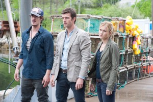 L-R: Duke (Eric Balfour), Nathan (Lucas Bryant) and Audrey (Emily Rose) go to the Haven docks to confront Rev. Driscoll about kidnapping the Glendower boys