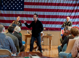 Boyd (Walton Goggins, Center) steps on his soap box to cut Napier (David Andrews, L) too bad Shelby (Jim Beavers) gets overshadowed.