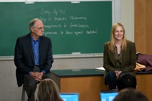 Dr. Atticus Sherman (Alan Alda) invites Cathy (Laura Linney) to speak to his students