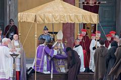 “Day of Ashes” sets up what is to come – a day of reckoning, but for whom? The Pope (Jeremy Irons) keeps his word to atone for his sins in light of the disaster caused by lightning, which resulted in numerous casualties and and a few fatalities. But, giving sacrament to the people hardly seems penance enough for the type of sins the Pope has committed. I will say, washing the feet of an elderly woman is a kind gesture, but feeding her and providing her with warmer clothes and shoes would have been more befitting.