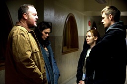 Stan (Brent Sexton) and Mitch Larsen (Michelle Forbes) with Detectives Linden ((Mirielle Enos) and Holder ((Joel Kinnaman)