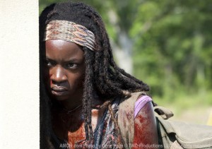 Can we all agree that Michonne (Danai Gurira) is not to be messed with? She wields her katana like it’s an extension of her arm (think Merle), becoming one with the weapon and taking down anyone or anything that stands in her way. I’m even more curious about her character now because I want to know how she got so good with her weapon and what fuels her killing rage.