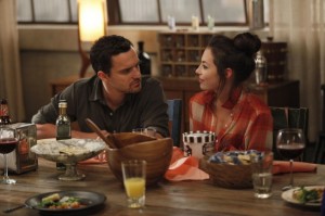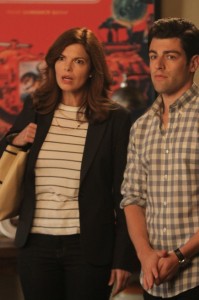 Guest star Jeanne Tripplehorn was an interesting addition to the show. She doesn’t show any inclination toward being funny, but she’s intimidating as Russell’s ex-wife, Ouli. Again, I don’t get the use of amazing actors in tiny, insignificant roles. Why not just bring back someone we’ve seen before or someone who’s actually funny to be… funny? Maybe the point was to show Ouli’s iciness in contrast to Jess’ goofiness. *shrug* Even with the few issues I have with “Kids,” I laughed more than I griped. I can’t wait to see what the writers of New Girl have in store for us next. I’m definitely going to have to remember not to drink anything while watching because this show is a choking hazard.