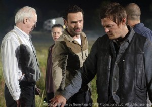 Dale (Jeffrey DeMunn) is the odd man out this week. Not only is he the only one fighting to keep Randall (Michael Zegen) alive, he makes the argument for morality: “If we do this, we’re saying there’s no hope. The rule of law is dead. There is no civilization.” It’s a difficult decision to make and one I wouldn’t want to be faced with. I don’t agree with the group’s thought of killing someone without cause. Yeah, he could get back to his group and sure, he could bring them back to the farm but there’s no guarantee. Living in a state of constant fear is what keeps them alive, so why is this situation any different? I don’t think Randall would bring about any trouble to the group, but there’s no real way to know. Times are different and it is “survival of the fittest.” What would you do?