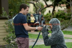 If you were surprised that Ryan (Elijah Wood) hasn’t RVSP’d to Jenna (Fiona Gubelmann) and Drew’s wedding yet, then you may need to put the bong down and focus a bit more. It’s plain to see how unhappy Ryan is watching Jenna and Drew be “so happy and perfect.” It makes the pain of his recently failed relationship with Amanda (Allison Mack) more acute. But I agree with what Wilfred (Jason Gann) says: “Well, then just admit that you’re too much of a pussy to let Amanda see the real you, and stop blaming Drew and Jenna for your unhappiness.” What could it hurt if Ryan told Amanda the truth—that he sees Wilfred as a grungy, foul-mouthed Aussie dressed in a dog suit who he talks to and gets high with every day. I’m sure Amanda, like any normal human being, would nod politely and walk slowly towards the door. Right?