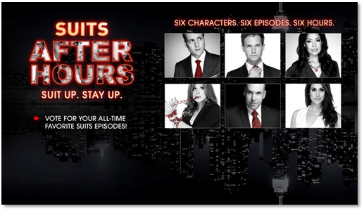 On Friday, June 6, 2014, USA network is hosting Suits After Hours, an interactive marathon event. See the official press release below. Now, time is running out for you to vote on your favorite episode of Suits at http://suitsafterhours.usanetwork.com/vote.html. Hurry, because you only have until May 4 to cast your ballot.