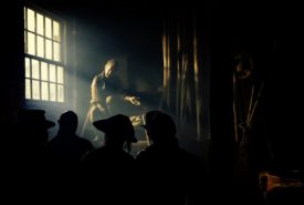 Hardy does the scare-you-shitless stare beautifully. I’m shaking in my boots after watching him remove something from a man that should still be attached to him. I don’t know what it was nor do I want to know. I’m afraid James is able to cut into people too easily for my liking. He doesn’t flinch when slicing his blade through a man’s flesh. How ever did those rumors of cannibalism follow him, I wonder?