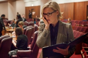 Meredith Kane (Connie Nielsen), while dutifully fulfilling her Chicago First Lady’s duties, reacts negatively to her husband’s news about Emma. Nielsen’s delivery is impeccable during these exchanges; her body language empowers these scenes. After ruthlessly dealing with reporter Sam Miller (Troy Garity), who questions why her husband is being treated by Dr. Ella Harris (Karen Aldridge), a fact unbeknownst to her, Meredith goes straight to confront Tom. They size up each other like two cowboys in the Wild West trying to assess whether the conversation will or won’t lead to a shootout. Meredith deals with Tom as if he was breaching a contract and the conversation reveals how they’ve distanced themselves from their daughter:
