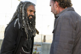 “Bury Me Here” is Morgan’s (Lennie James) moment to shine. We see him in his element, teaching the art of self defense without taking a life. We also see him so heartbroken and weakened, he behaves in a way unbecoming of him. Morgan regresses to the man he once was when all he could think to do was clearing the area of walkers. He doesn’t completely make the transition back to the Morgan we saw in “Clear” but he comes damn close. There is a fitting montage showcasing his mindset and how he handles his place in the Kingdom. Morgan is beyond caring what others need. He only wants to make it from one day to the next without losing anyone else. I don’t think Morgan has ever truly recovered from his losses and “Bury Me Here” gives viewers a good idea of how tightly Morgan has been holding onto his sanity. It was not that long ago Rick found Morgan and tried to reach him. Now, Morgan is waffling between the here and now. He goes against everything he believes and kills, on purpose. To what end. And will Ezekiel (Khary Peyton) make moves to help end the Saviors or will he continue to hide behind the walls of the Kingdom?