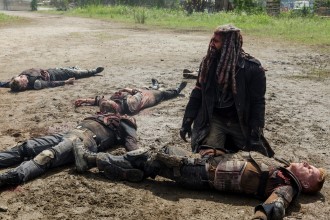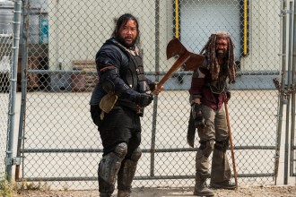 “Some Guy” opens with a flashback to The Sanctuary before the big battle with the Saviors goes down. King Ezekiel (Khary Payton) washes his face and gets dressed while his soldiers say goodbye to loved ones as they prepare to stare down the unknown. After a grand and powerful speech, the inhabitants of The Sanctuary surround King Ezekiel with adoration and respect, just as his soldiers do at the end of “Monsters” before the Saviors unleashed their .50 caliber machine guns on them.
