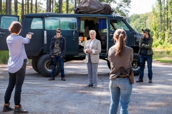 In Georgie’s statement, I hear Carl’s (Chandler Riggs) message rebounding back. He said there had to be a better way to move forward instead of killing. Perhaps this is an opportunity to do just that; however, can Georgie be trusted? Where did she come from? Why is she so clean and nicely dressed? Where did she get all the provisions sitting in her van? Are there other nearby communities that we don’t know about that Georgie has been able to “barter” with?