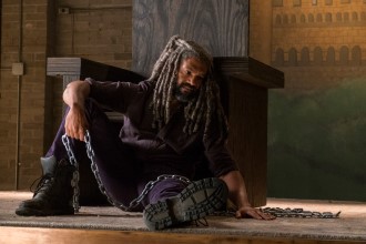 King Ezekiel (Khary Payton) remains absent after the tremendous losses suffered at the end of “Monsters” and “Some Guy.” He lost many of his people and his beloved tiger Shiva. Jerry (Cooper Andrews) guards the door to the theater, not allowing anyone passage but Carol (Melissa McBride) will not take no for an answer. She gives a great speech but her tearful plea doesn’t make Ezekiel bounce back. “You just made me feel real.” His confession to Carol about why he kept visiting her when she first arrived at the Kingdom sounds sweet, poetic even, but Ezekiel is done playing the part of king. If he’s not going to be their ruler, he needs to sack up and go tell them. Stop cowering in your theater, holding Shiva’s chain. Mourn your loss and move on. This is not a regular world where you get to sit and wallow for days on end. This is a world where zombies are real and assholes are trying to kill you.