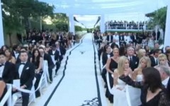 When the big day arrives, Kim spends time at a private Santa Barbara estate with her mother and sisters preparing to pledge her heart and soul to the man with whom she’s deeply in love. Along with Kaela, Kim’s future sister-in-law, the ladies go through a frenzy of hair and makeup before donning their white Vera Wang gowns, with Kim getting the extra care, attention and jewels every bride deserves. As she waits to walk down the aisle, wedding guests gather to surround the couple with love, and wish them a long and happy life together. The touching, traditional, yet glam ceremony leads into a sumptuous dinner held in an enormous tent outfitted in black and white, recalling the grandeur of old Hollywood.