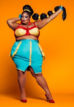 From the legendary drag House of Davenport, A’keria’s slick, shiny look makes you sit up and pay attention. The current reigning Miss Black Universe, this super accomplished pageant queen is doing the Davenports proud with her signature aesthetic: “fit, fashion, mug and body.” Expect big hair, big attitude and big results from this competitor.