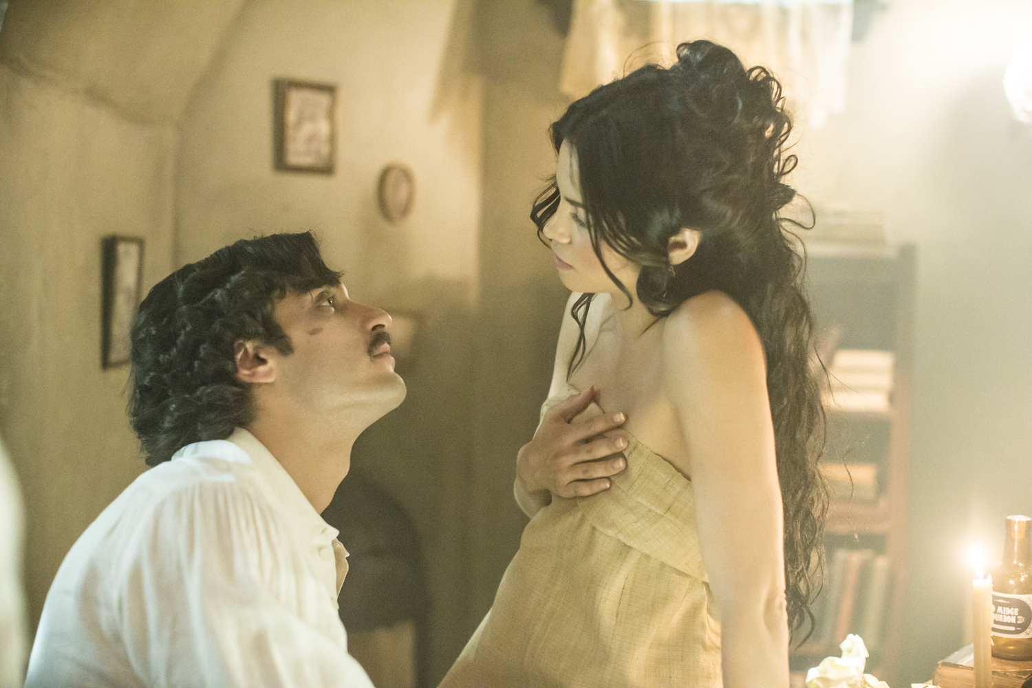 The Beauchamp family has been around for a long time so it’s no surprise they may have had some interaction with historical figures. However, Freya’s encounter with Edgar Allan Poe is far more intimate, especially when he happens to be another incarnation of Killian (Daniel Di Tomasso)! Yes, the poem “Annabel Lee” is apparently code for Freya Beauchamp, who not only falls madly in love with the morose artist, but breaks the cardinal rule by revealing the truth about witches. It’s a risk pairing up Killian with such a popular writer like Poe, but the way episodic writer Debra J. Fisher handles the story line works. The love between Freya and Killian is the main objective while Poe’s notoriety isn’t played heavy-handed; Poe is just another struggling artist and Freya his muse. Since this is Witches of East End, I suspected from the start that Freya and Poe would have more than a passionate affair. Tampering with dark forces, Freya and Poe perform a séance, inadvertently calling upon a malevolent spirit. The consequence of Freya’s reckless decision causes a negative ripple effect that defies time.